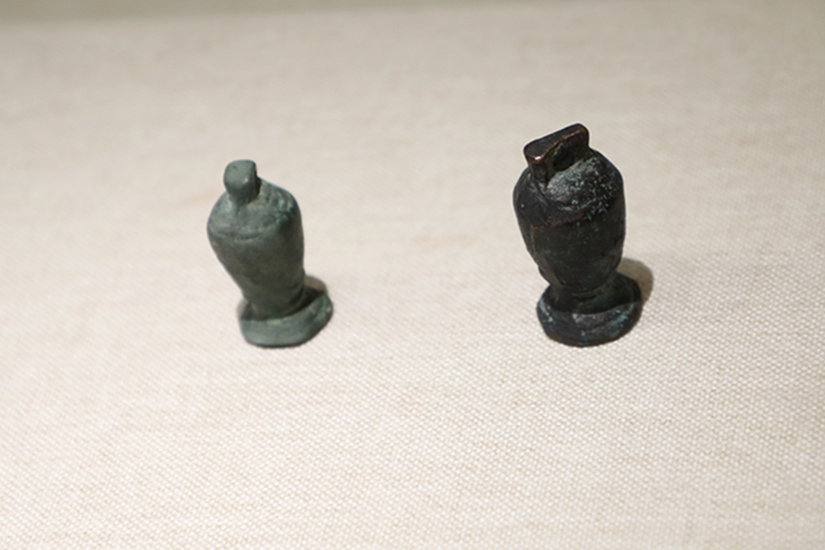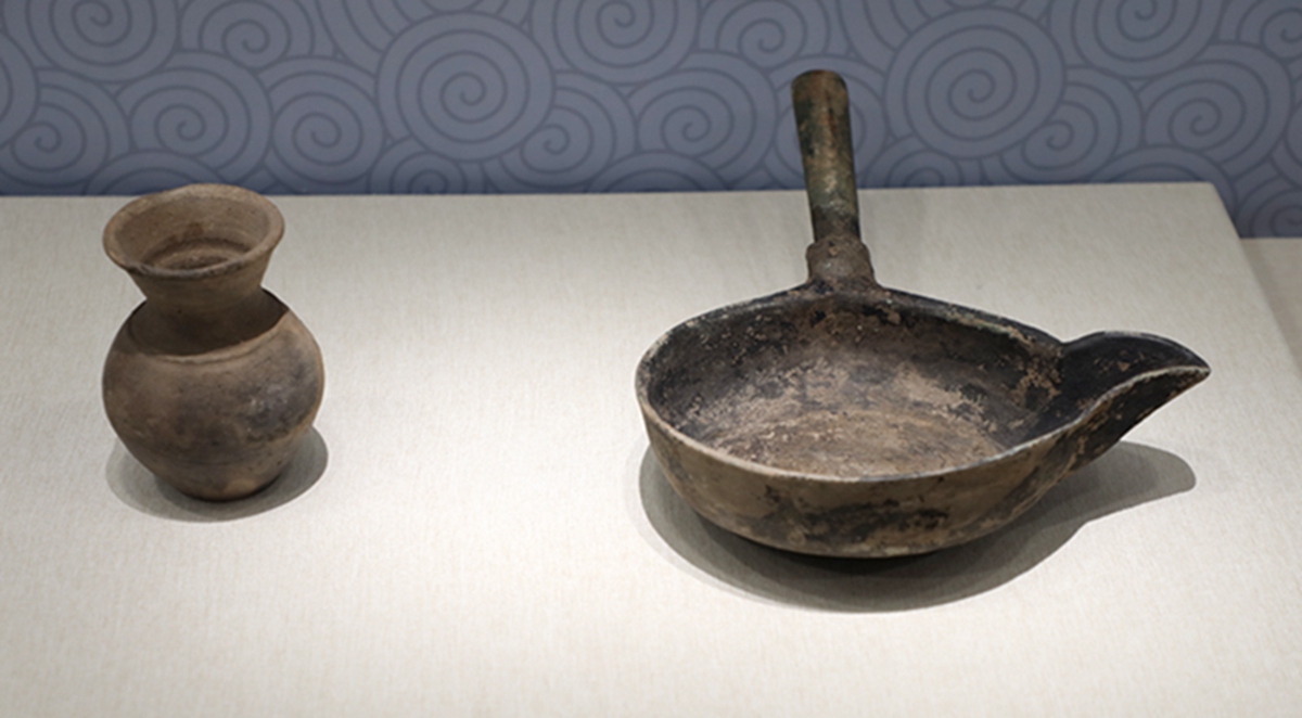 童俑龙首青铜勺、黄釉盘口罐