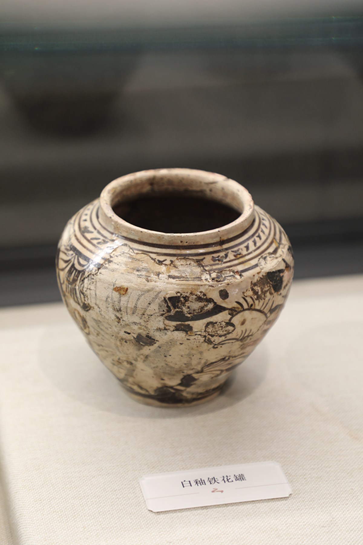 白釉铁花罐