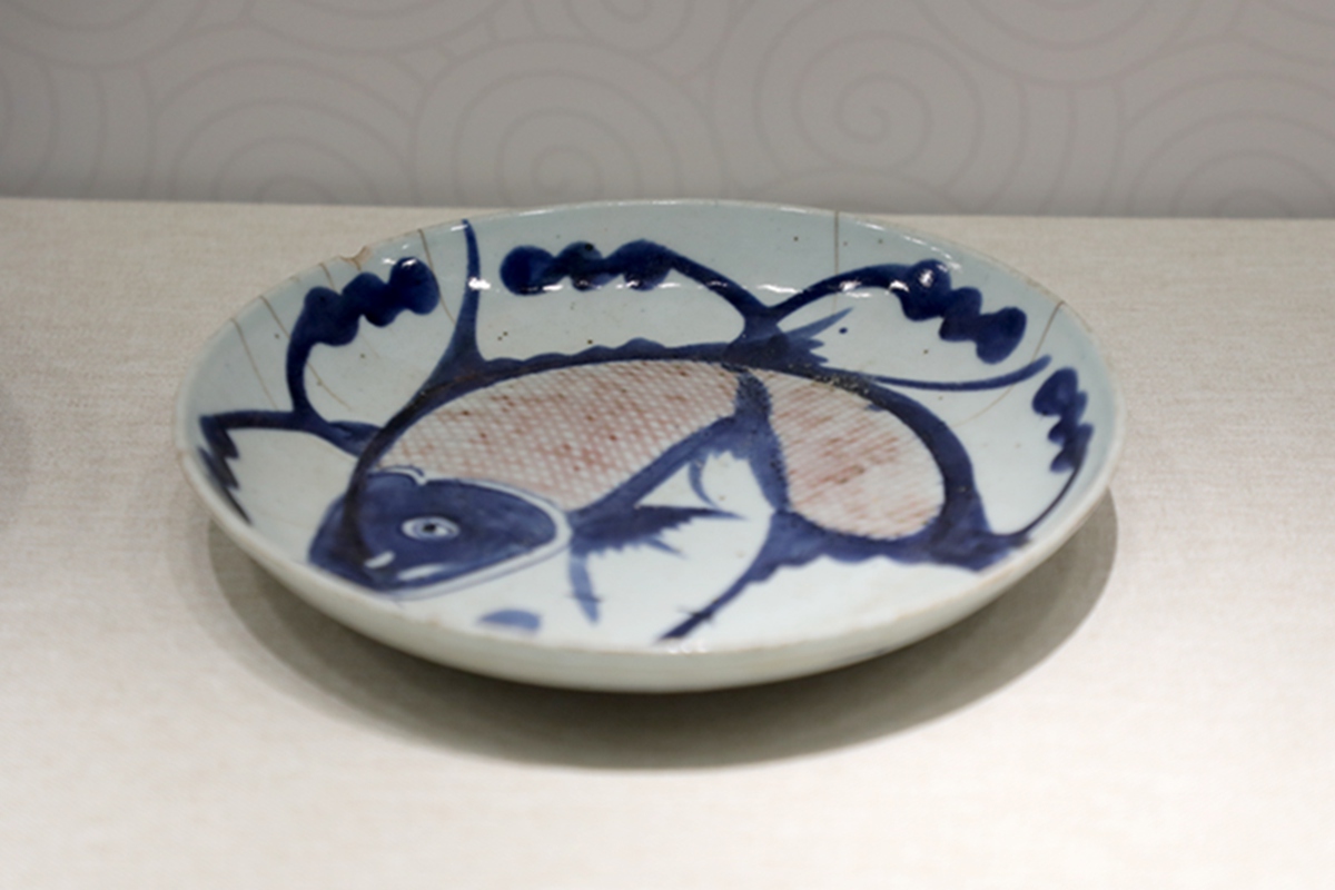 带鲤鱼纹青花瓷盘